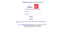 Midland Metals Overseas Pte Ltd. Please enter username and password! This is a secure area. You must enter your USER NAME and PASSWORD to gain access. With questions or comments about this web site. Last updated: Wed, 13 Sep 2017 13:09:24 0000.