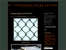 PT SURYASAKTI PUTRA LESTARI. Pengadaan Pagar Kawat Harmonika. Posted in Pagar Harmonika. On February 11th, 2011. Pengadaan pagar kawat harmonika. Untuk area Jawa Barat. Kawat Harmonika Digunakan Untuk Pagar. On February 11th, 2011. Dalam berbagai ukuran :. 2 IN x 100″. 4 IN x 100″. 6 IN x 100″. 2 IN x 400″. 4 IN x 400″. 6 IN x 400″. Menyediakan juga jasa pemasangan Wrapping Tape. Pengadaan Material Spiral Wound Gasket. On February 11th, 2011. Pengadaan material spiral wound gasket. Tersedia dalam ukuran :.