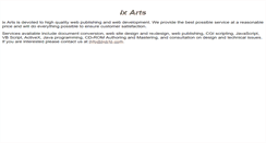 Ix Arts is devoted to high quality web publishing and web development. We provide the best possible service at a reasonable price and will do everything possible to ensure customer satisfaction. Services available include document conversion, web site design and re-design, web publishing, CGI scripting, JavaScript, VB Script, ActiveX, Java programming, CD-ROM Authoring and Mastering, and consultation on design and technical issues. If you are interested please contact us at info@ixarts.com.
