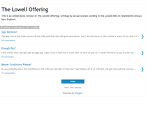 This is an online BLOG version of The Lowell Offering, writings by actual women working in the Lowell Mills in nineteenth century New England.
