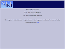 Welcome to the future home of. This website is currently under construction. NK Investigations specializes in insurance investigations including workers' compensation, general, automobile, and product liability. Please feel free to contact us here.