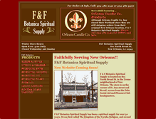 For Orders and Info, Call: 504-482-9142 or 504-482-5400. We're Still Featuring . Orleans Candle Co. Products. Although Orleans Candle Co. has closed their Portland store they are still shipping orders from their original New Orleans location, F and F Botanica Spiritual Supply. Please call 504-482-9142 for orders and info. Open 8:00- 5:00 Daily. Closed Wednesday and Sunday. F&F Botanica Spiritual Supply. 801 North Broad St. New Orleans, LA 12345. Faithfully Serving New Orleans! New Website Coming Soon!