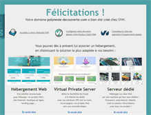 Votre domaine polynesie-decouverte.com. A bien été créé chez OVH. Accédez à votre Webmail OVH. Depuis votre Espace Client Web. Consultez la liste des. Vous pouvez dès à présent lui associer un hébergement,. En choisissant la solution la plus adaptée à vos besoins :. Pour héberger vos projets Web :. Site Internet, boutique en ligne,. Alliez la flexibilité du Cloud. À la liberté du dédié. Avec nos solutions VPS clef en main. Accompagnez vos projets Web. Vers une nouvelle étape. Hébergez vos sites Web.